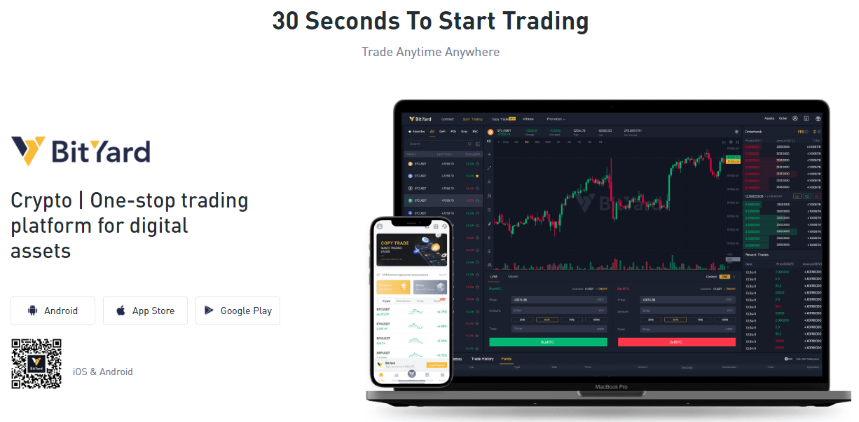 - BitYard trading platform offers a mobile app for trading. This app is available on the Google play store and APP store to be downloaded for those traders who want to trade on the go.