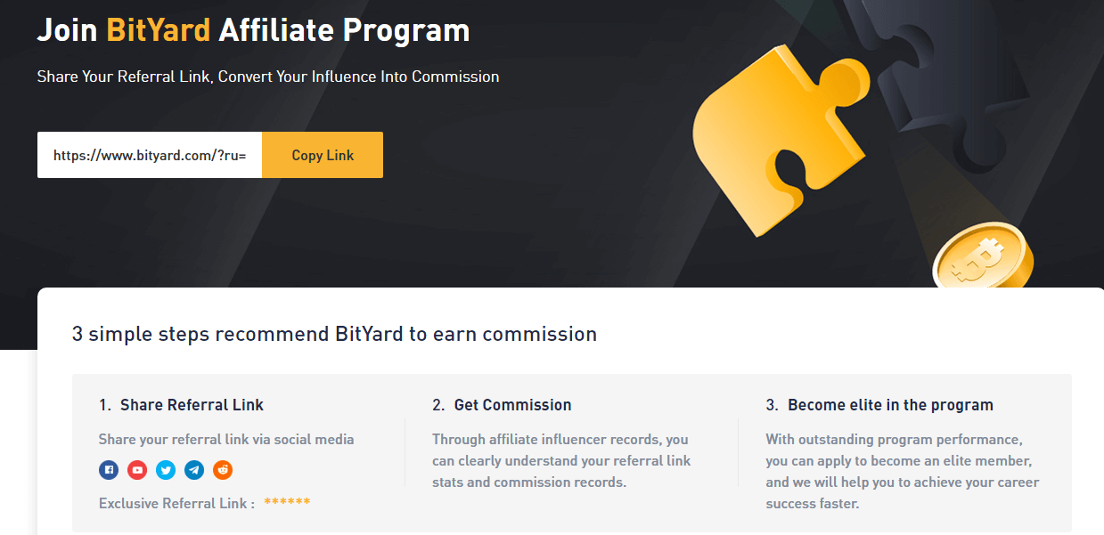 - One of the major benefits offered by this broker is it offers an affiliate program where 60% of the commission on the BitYard fees is offered through the program.