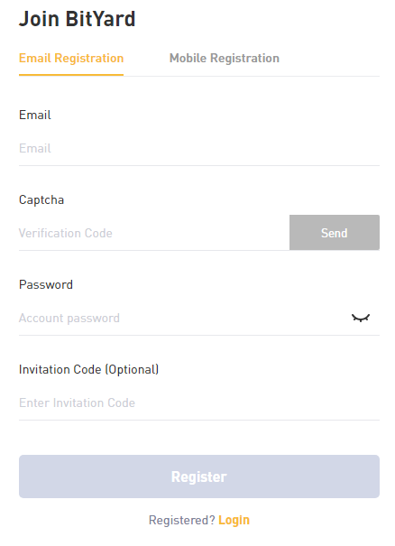 - Opening an account with BitYard is simple and easy; the trader needs only to register with an email address or mobile phone number. They can be registered within 30 seconds to become a customer.