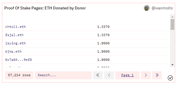 善款數字最高那位人兄捐了 1.3370 ETH。