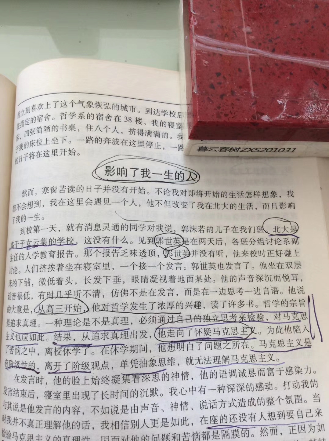 在反修批修的六十年代,中共搞了个九评,声调之高,激动着北大的好些学生,大声喝彩,郭世英讽刺说:感觉这些人看似立场鲜明,其实根本没有自己的立场,如果生活在苏联,他们同样会为苏联对中国那样而批判喝彩。他对周还说:我们说他们是苏修主义,他们说我们教条主义,你知谁对谁错?说人家是特权阶层,有别墅,咱们哪个领导没有?我父亲走到哪里,哪里都有他的房子,北戴河,青岛,上海都有,中国还不是凭资格吃饭,才能是毫无用处的……还说把马克思主义学得越好,最后就越是走向他们的反面。