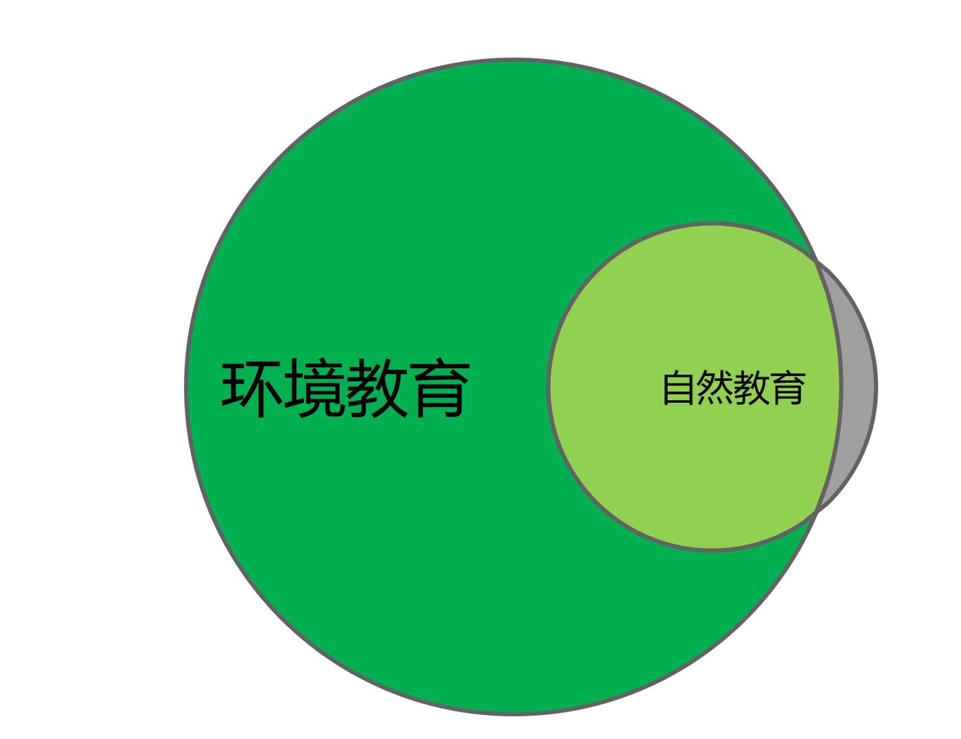 不過不管怎樣,研究上分析時要盡量理清概念。除了自然教育中那些破壞環境的方案,環境教育已經涵蓋了自然教育的內容,自然教育實際上是環境教育的一部分(圖3),可以藉鑑環境教育的理論,來指導領域內的實踐和發展。