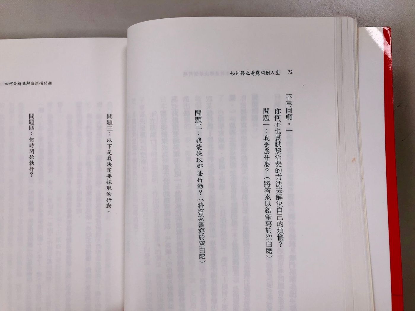 扯遠了。除了教材以外,發放給學員們數本「課外讀物」——有藍、綠、紅(無關政治);呼應這次 #遠離焦慮 社區活動,把俗稱「小紅書」的《如何停止憂慮開創人生》翻出來,來看看能挖到什麼寶。