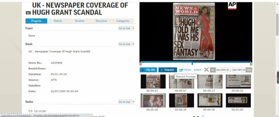 于是考德拉就和搭档一起开车跟踪,发现他们穿过街区,停在一栋房子面前。考德拉回忆说:“我看到戴维尼的头低向男人的大腿,然后她的头就完全消失在我的视线内了,我看了看我的搭档,我们决定等一等,先让他们乐一乐。”说着考德拉忍不住笑了起来,“格兰特太投入了,他整幅心神都在他的下半身。完全没注意到周围有人,更没有发现我们。我们走过去透过车窗看到了他们的全过程。然后我敲了几下车窗,戴维尼抬起头看到了我们,一下子就跳了起来,而格兰特则迅速穿戴好他的衣服。当我们确认他的身份的时候,我的搭档小声跟我说‘那是休-格兰特’。我简直无法相信,因为我几个星期以前才看了他主演的《四个婚礼和一个葬礼》。”
