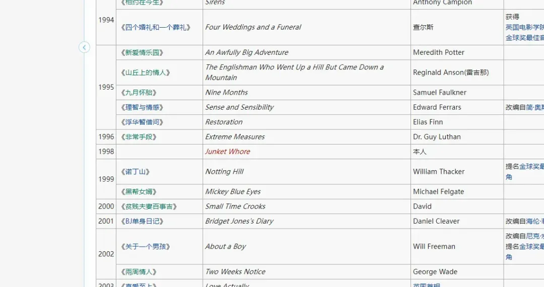 1996年,休就拍了一部戏;1997年,拍了0部戏;1998年,一部戏。一直到1999年,他与大嘴美女 朱莉娅·罗伯茨主演《诺丁山》后再度站上演艺界的一线位置,总算咸鱼翻身。