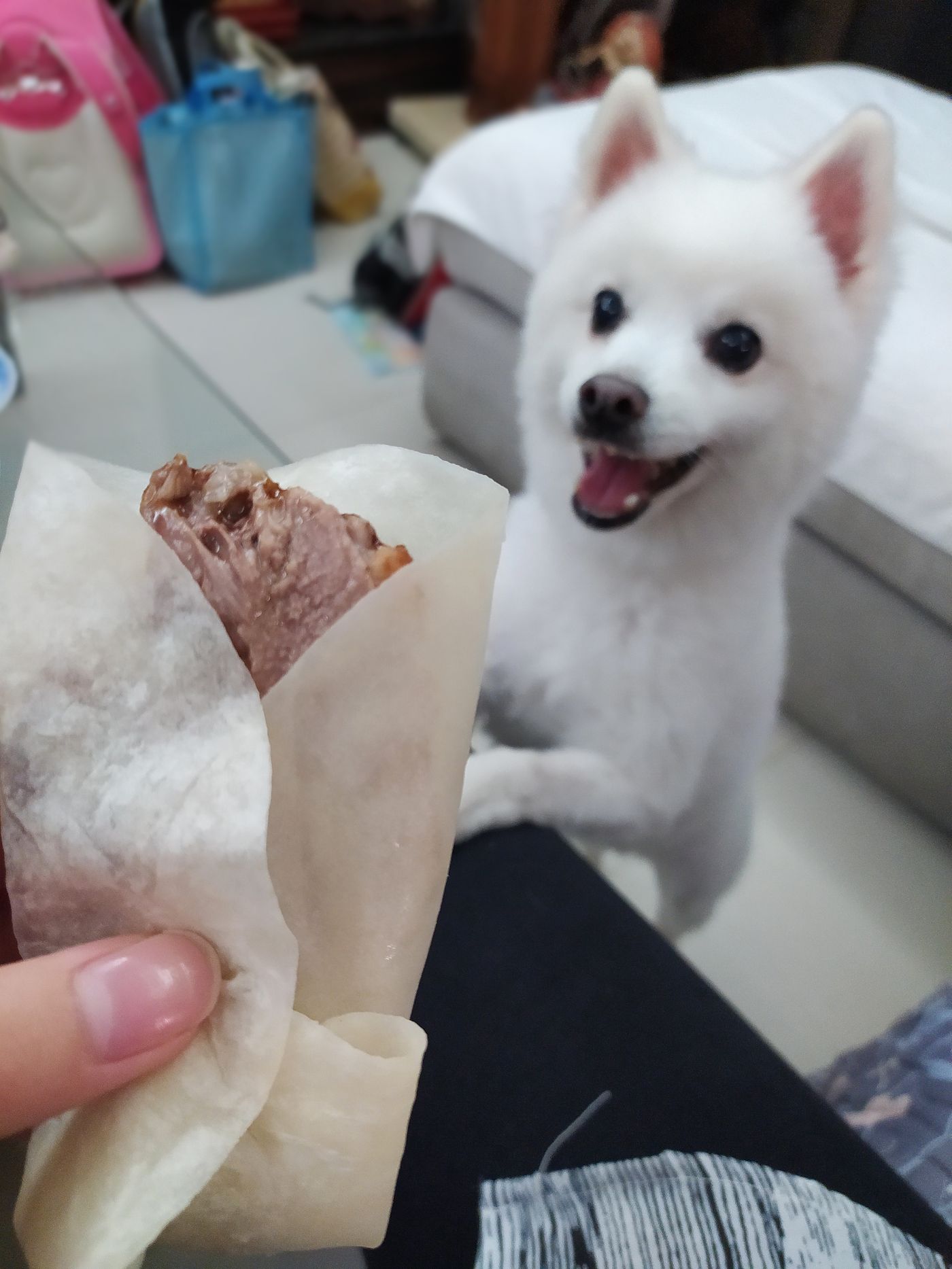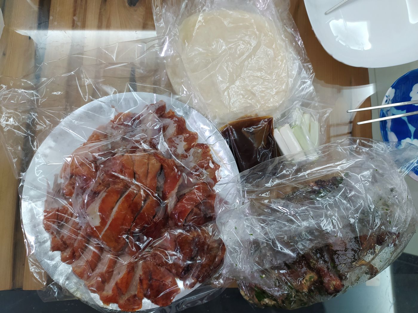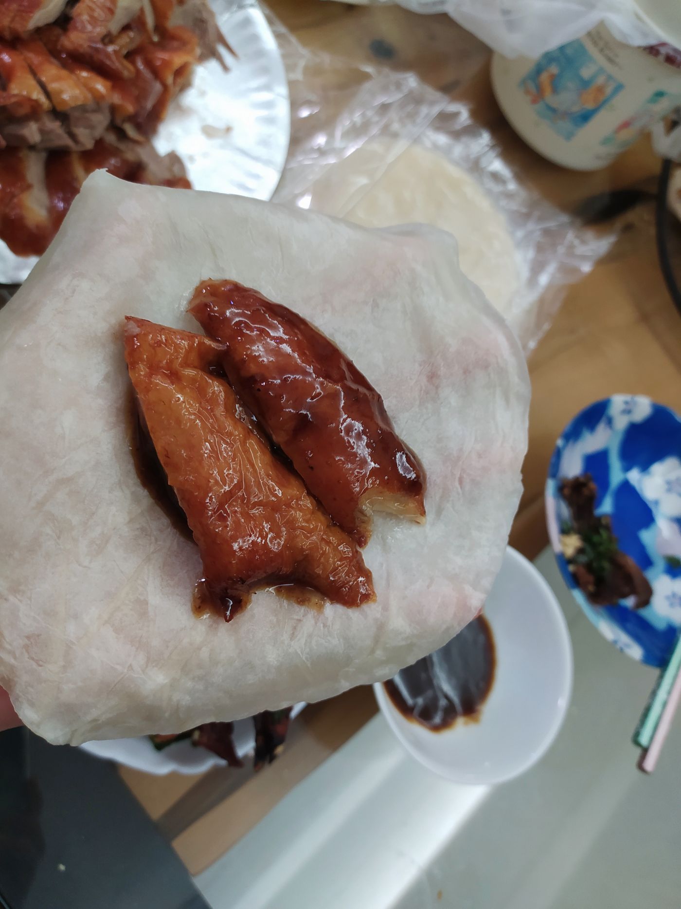 油亮亮的烤鴨🤤現在看到照片又好想吃烤鴨哦!烤鴨實在是香味十足,相當入味,而且一點也不柴,非常軟嫩,沾上沾醬包上餅皮,開動囉!