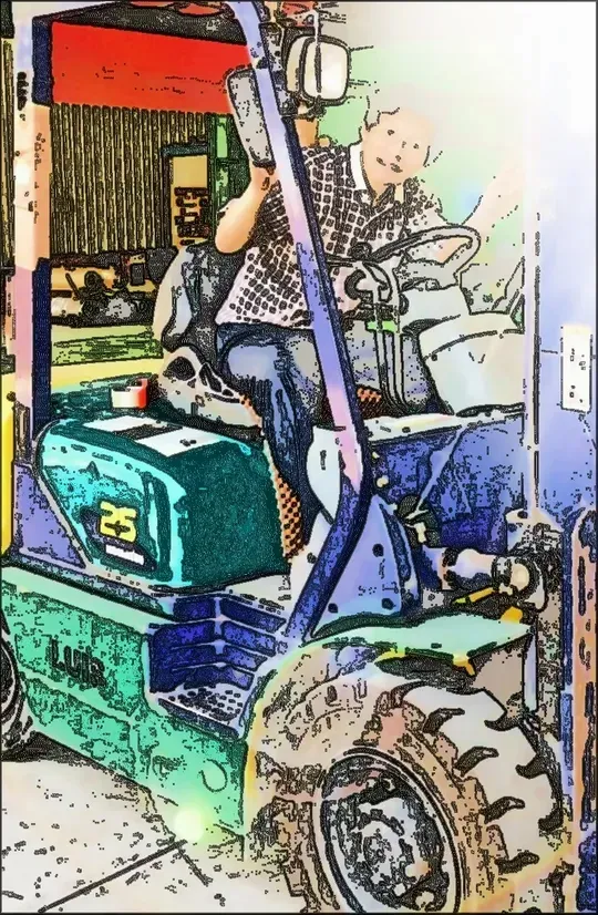 當司機送貨,南北二路的跑,想說有一天一定需要自己開堆高機上下貨,這在捆工界、司機朋友間稀鬆平常的事,你說不會也是很漏氣的。可是,真沒開過,果然,這天來了,還是要在兩個女孩子面前「表演」,這也算「漏餡」。