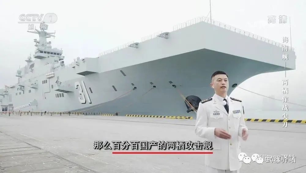 原图大概是这样的,这是今年央视《开讲啦》栏目075一号舰海南舰舰长闾勇军在介绍075两栖攻击舰的性能特点。