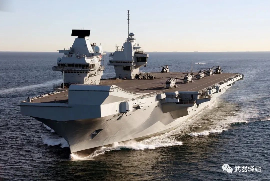 类似上面这两幅英国的女王级航母的舰艏滑跃甲板。