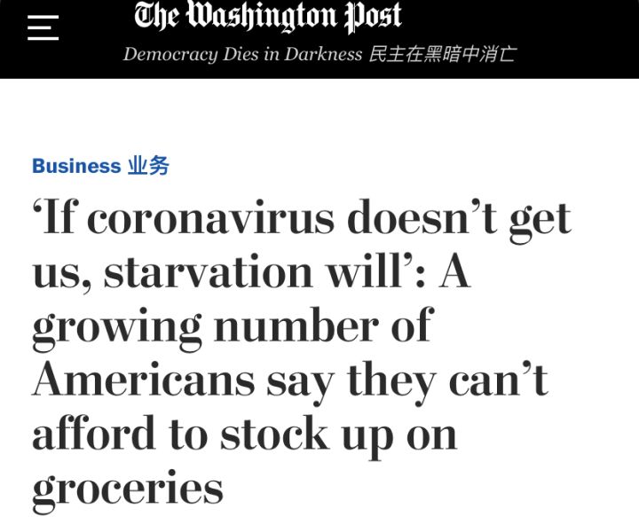 目前,政府和国会不仅需要美联储支持他们的银行以防止全面崩溃,还需要向所有员工的口袋里放入现金,在他们花完最后一张工资支票后还能吃上饭,川建国同志本来打算复活节重新开放社会,其实考虑的就是经济这个问题。