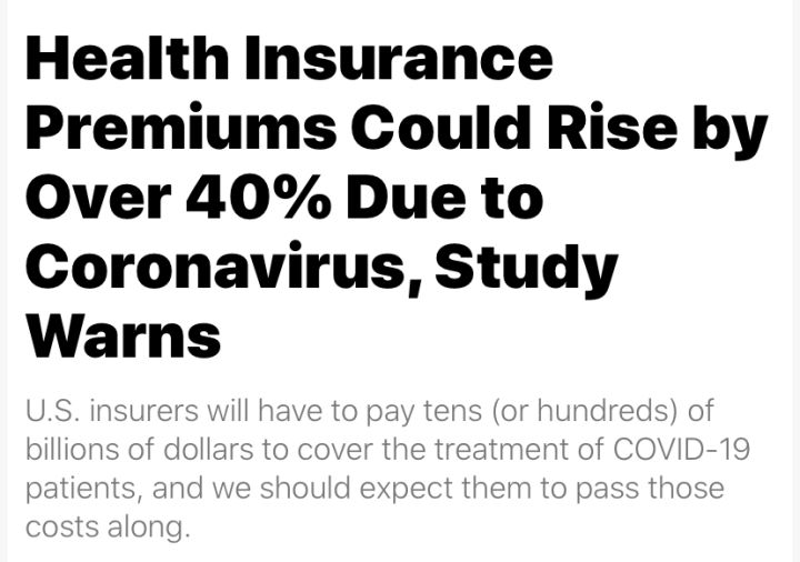 虽然检测费用全免,但是治疗费用并没有免费,新冠的治疗可能超过 2 万美元左右,在美国有将近 3000 万人没有保险[3]。而且即使有医疗保险,也需要承担前 10%的费用,在没有新冠疫情影响下,2019 年凯撒家庭基金会(KFF)雇主健康福利调查发现,今年雇主赞助健康保险的家庭年保费上升了 5%,平均为 20576 美元。然而,同期工人工资仅上涨了 3.4%,通货膨胀率上升了 2%。