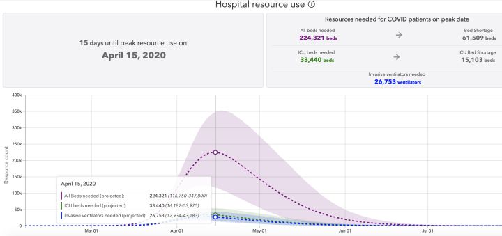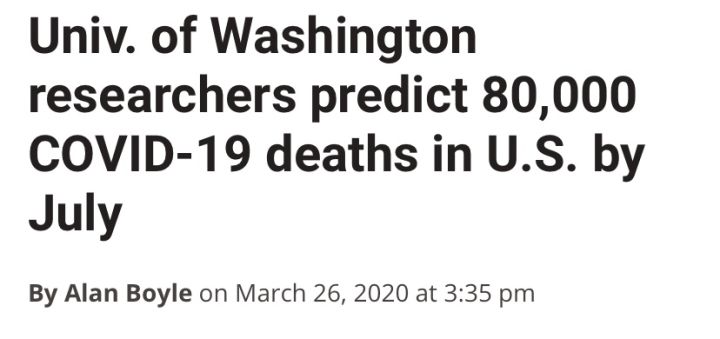 再说个最直接的例子,26 号华盛顿大学方面的预测可能会达到 8 万人因 covid-19 死亡,