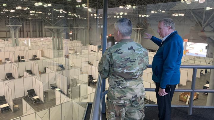 以纽约最大的会展中心贾维茨(Javits)为例,耗时一周改造成的野战医院,收治的是非新冠患者,据说是为了防止交叉感染或因时间不够改造。