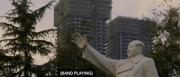 纪录片在呈现景观如何制造城市梦的同时,也在不断地拆解城市梦。一方面是博伦斯坦的叙述声音——他从无法理解到、质疑否定外籍表演的虚假,声音加在镜头之上,具有强大的解构力量。另一方面,镜头对准了那些溢出景观制造的场景,这些场景包括废弃的巨大的体育场、卖不出去的别墅和空荡荡的楼房,还有蒙受虚假广告欺骗的业主集体维权,它们都在提示着那个承诺了“繁荣、强盛”、“让生活更美好”的城市的承诺的虚幻。