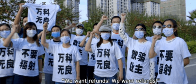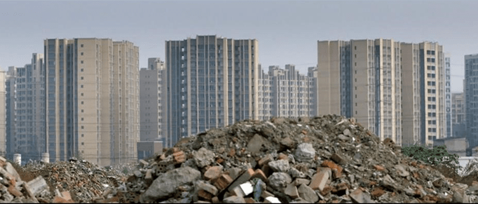 列斐伏尔用“残余” (residue)这一概念指那些在都市扩张吞噬乡村腹地而被暴力清除、被排斥、被强迫离开的人们,他们蹒跚在边缘地带。而《梦想帝国》则直指城市梦的“残余”,它们是那些身穿“欺骗业主”白色 T 恤在楼盘演出外集体抗议的被欺骗的消费者,它们是表演散去人去楼空的卖不出去的鬼城(ghost city),它们是那些耸立在荒地上怪异的国际化建筑,它们是那些家园被推土机摧毁的 的边缘者,这些都必须被视觉的可见中清除掉,必须将其从合理的论述和公正的价值认可中排斥出去,不管在事实上还是在价值赋予中它们都成为不可见者,以此确保象征着荣耀与辉煌的城市梦的坚不可摧。