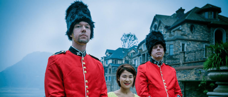 另外,并不是所有的异域脸孔都能够成为代言者。纪录片的开场,经纪人Yana去酒吧寻找符合标准的脸孔,她在本子上登记下身材、颜值等信息,而标准就是这张脸孔必须符合大众对外国人的想象以及审美要求。不管是爵士乐队还是身着皇家卫兵制服头戴熊皮帽的展示,所再现的是一个中国人想象的西方,这个西方“既仅在身边又远在他方,既富于异国情调但又似曾相识”。
