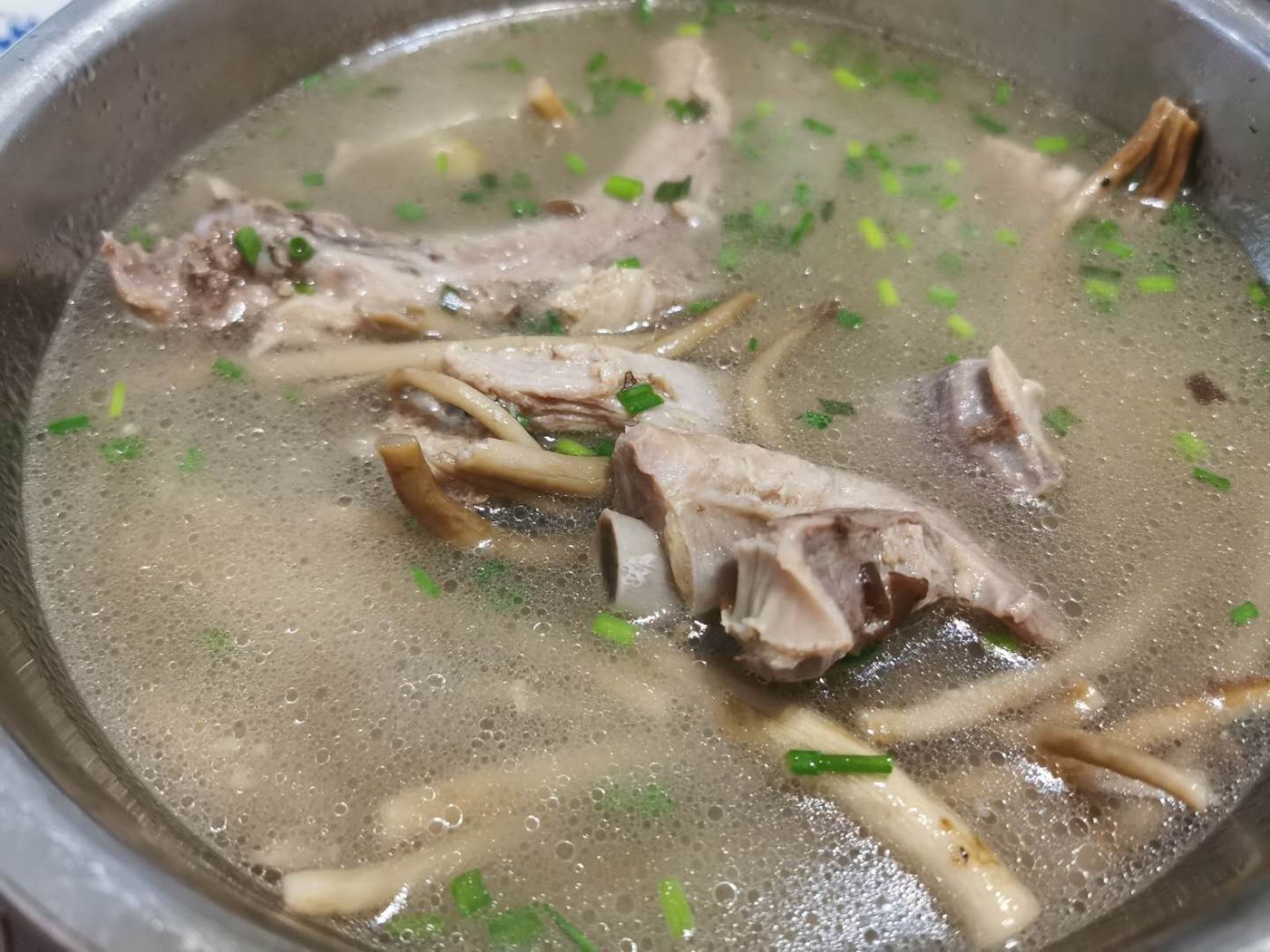 先把排骨和茶树菇洗净,排骨焯水;把排骨、茶树菇、生姜、料酒一并放入高压锅;压8分钟后开盖放适量盐;最后撒点葱就可以了。