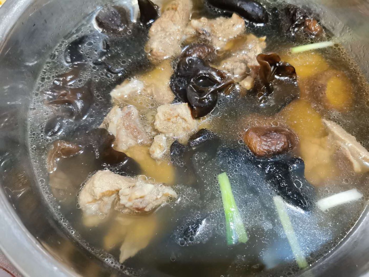 配料:排骨、干木耳、干香菇、生姜、料酒、葱、盐。
