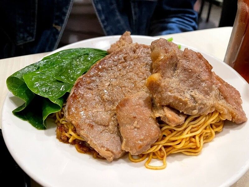 豬排倒是沒有辣,有點嚼勁,就...豬排表現普通,但份量很大,