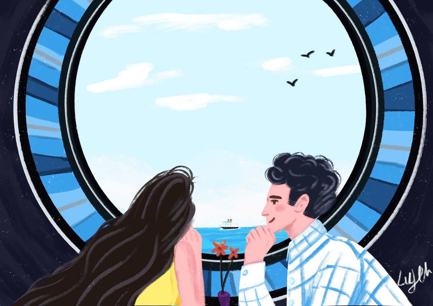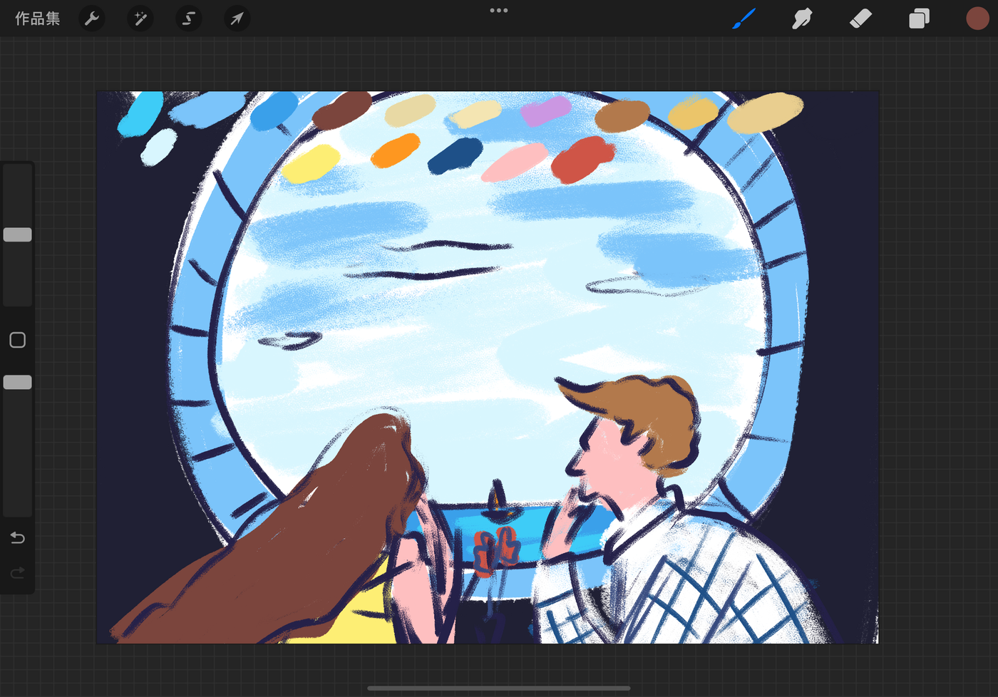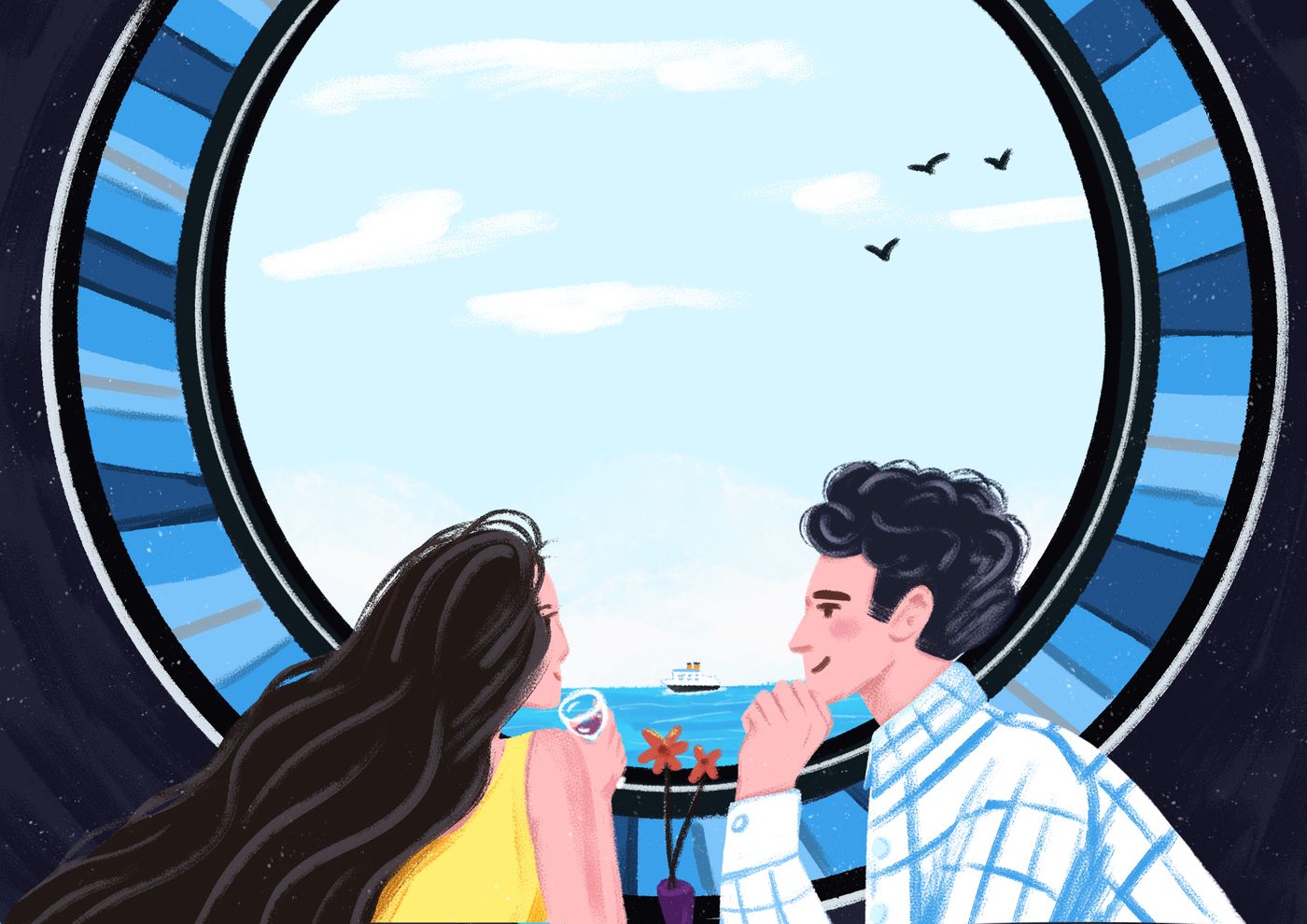 这幅完成度看着不错?一场甜蜜的约会,男女主相互眼神交流似乎想说些什么...有氛围感吗?
