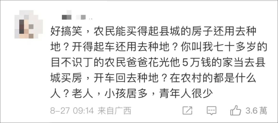 官媒说鼓励农民买房要算后账,其实这话说得已经很委婉了。