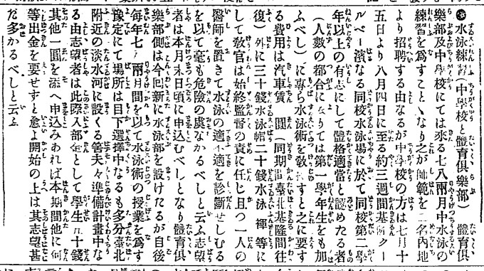 水泳場成立後,周邊不少學生也開始利用暑假期間參加游泳訓練。各學校也開始舉行游泳課程,例如國語學校從1909年開始,每年在基隆舉行暑假游泳講習會;總督府中學校則自1907年暑假起,在基隆的大沙灣進行為期三周的水泳場練習。