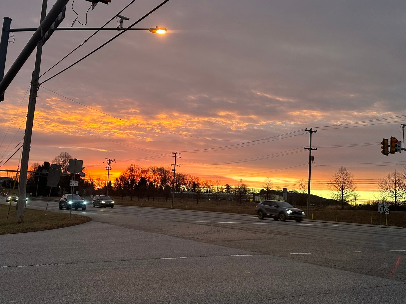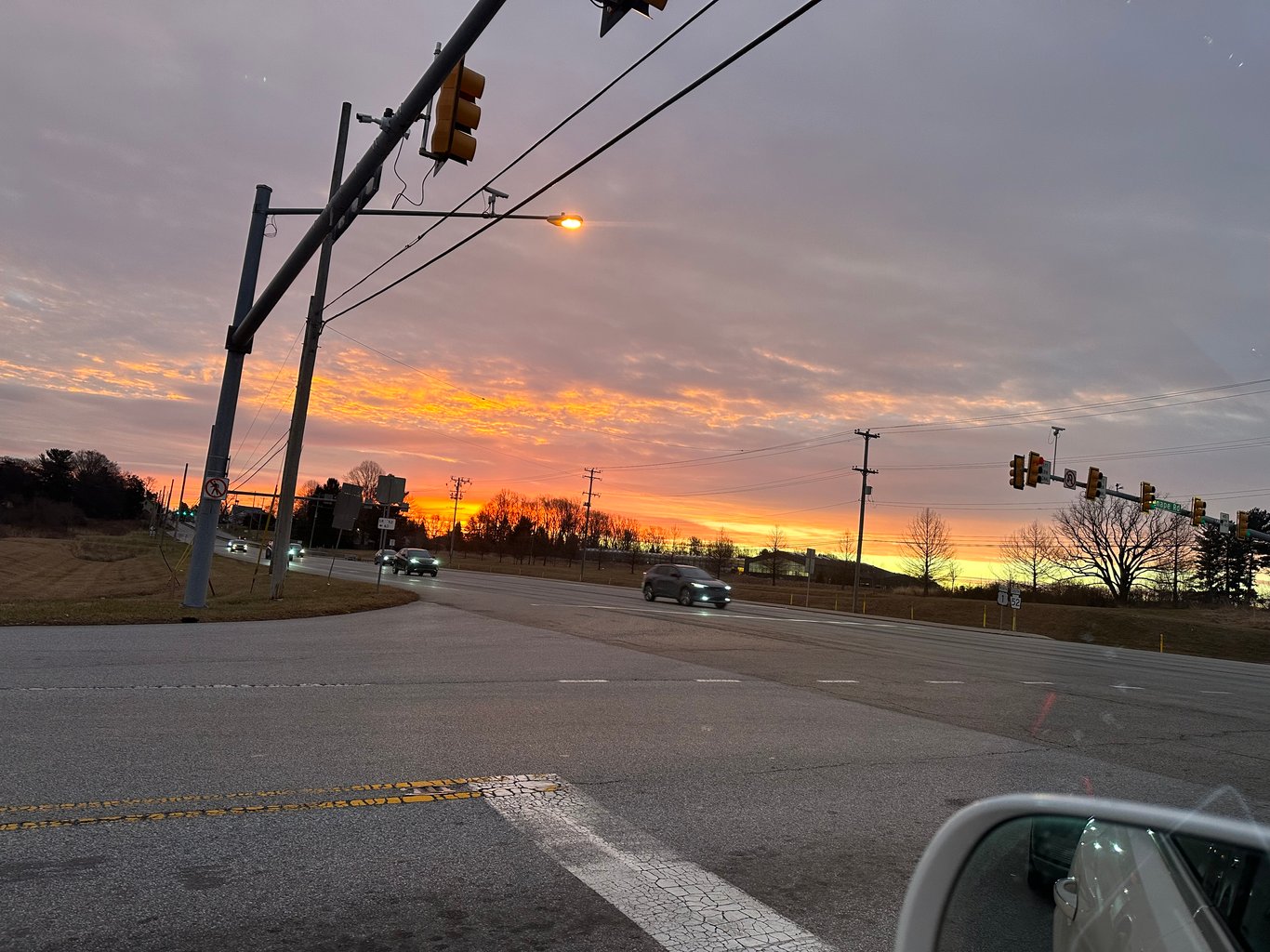 早上去上班开车开到一半的时候,就看到天上朝霞满天。正好到了一个红绿灯处等待绿灯,赶紧地拿出手机对着窗外拍了几张。虽然照片无法全面显示出朝霞的美丽,至少可以想象一下如果亲眼看到那是多么的美呀!