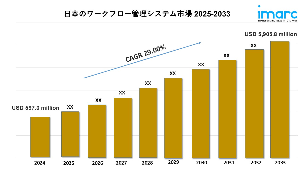 IMARCグループの最新レポートによると、「日本のワークフロー管理システム市場規模は5億9,730万米ドル2024年には市場規模が59億580万米ドル2033年までに成長率を示し(CAGR)29.00%2025年から2033年の間に。」