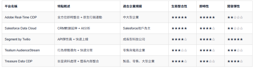 包括 Tealium、mParticle、Zeta Global 等,適合特定場景與中型企業。